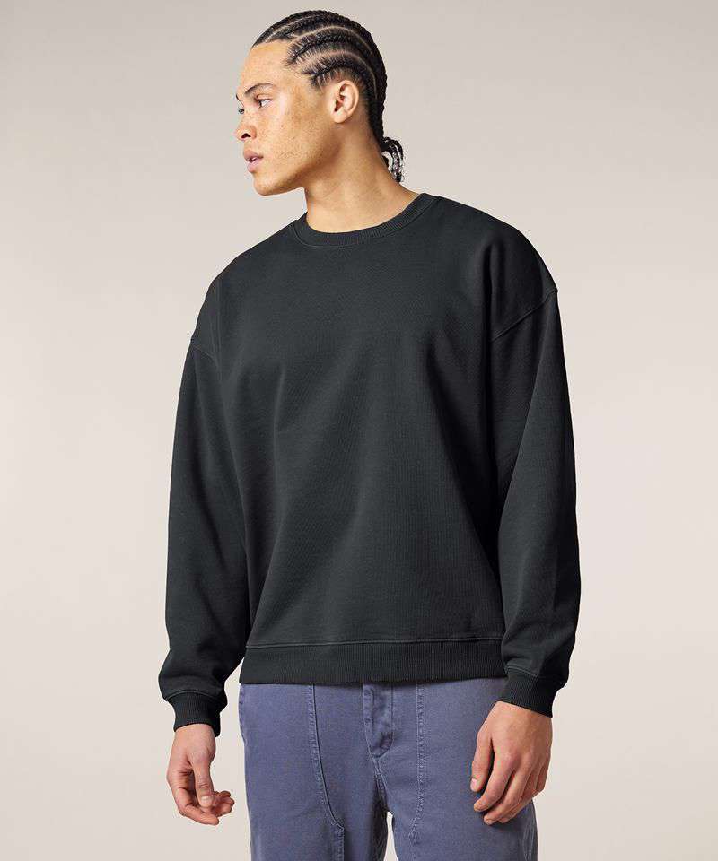 Premium, oversized, garment-dyed crew neck sweatshirt in 100% organic cotton, 350gsm. Streetwear-inspired fit and details. On-trend colours. Excellent printability.