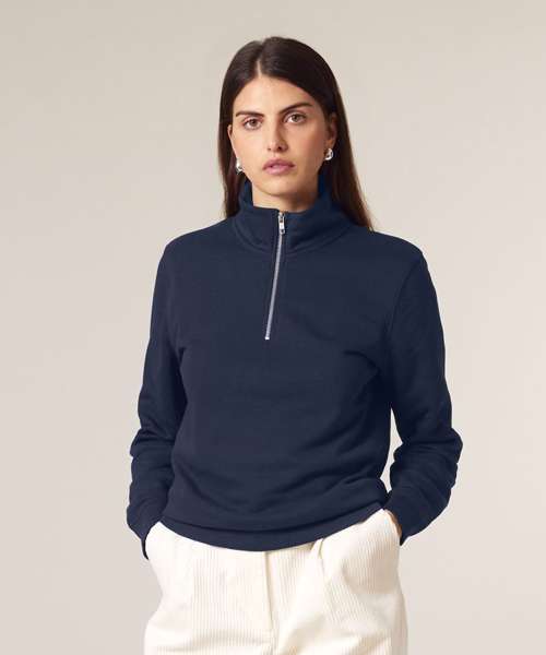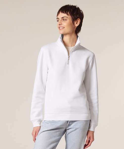 Premium, unisex, quarter-zip sweatshirt in 85% organic cotton and 15% recycled polyester. Medium fit, 280gsm. Ideal for corporatewear. Excellent printability.