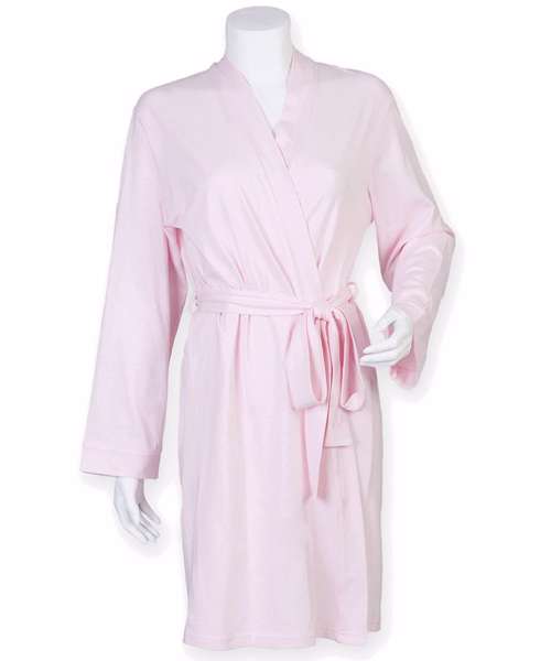 Relax in style with the women's robe, made from soft, lightweight cotton Jersey with matching tie belt and colour options.