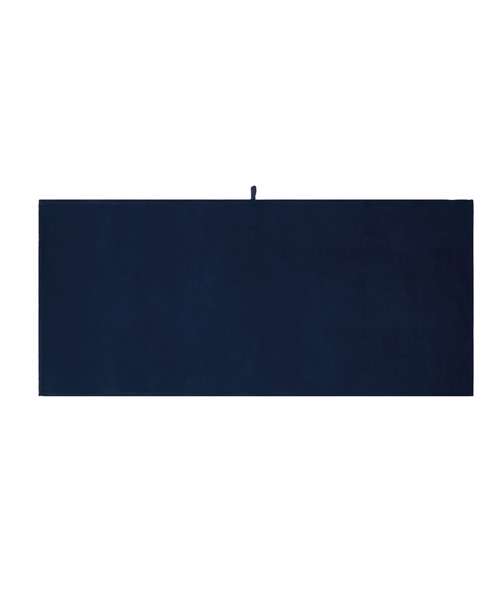 Quick-dry beach towel in 89% recycled polyester and 11% nylon with a peached finish. Self-fabric storage bag. Suitable for print and embroidery (White is suitable for sublimation). Turned and stitched edges on all sides with a 0.5cm border. Woven, peached fabric with no pile. Self-fabric hanging loop on rear face. High absorbency. Tear-out label for rebranding ease.