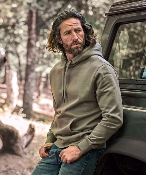 The heavyweight Hooded sweatshirt features a large front pocket and an adjustable hood, with double-stitched elastic cuffs and waistband.