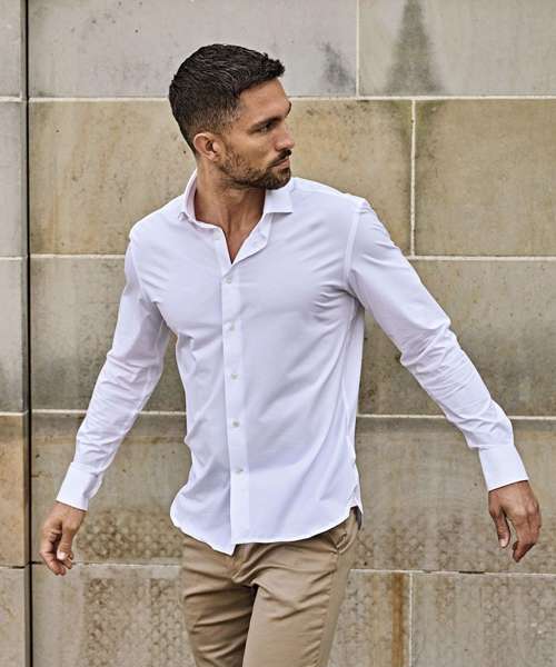 The Active stretch shirt has a shaped fit with luxury four-way stretch for total comfort. The knitted cotton/elastane quality ensures elasticity and softness – and it’s quick-drying, so is easy to wash and care for.