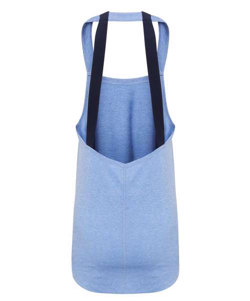 Soft touch fabric. Contrast double strap on back. Open back. Slight hi-lo hem. Twin needle stitch on hem, neck and arm holes. Slight stretch. We recommend using block out vinyl and inks.Product contains no branded neck or waist label. Removable Kimble or looped garment tags. Inner seam label holds important product information on one label with a second label containing brand information which can be cut-away.