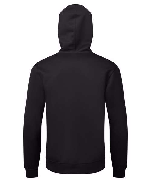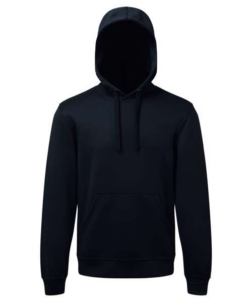 Unisex hooded style with kangaroo pocket. Drawstring cord fastenings to hood with chrome eyelets. Double-panelled hood. Cuffed sleeves and hem. Made with recycled polyester, Spun dyed technology. Spun dye melts colour pigments and recycled polyester together, creating coloured fibres using fewer chemicals, less water and less CO2. Spun dye fabric also improves the colour-fastness of garments. We recommend using block out vinyl and inks.Product contains no branded neck or waist label. Removable Kimble or looped garment tags. Inner seam label holds important product information on one label with a second label containing brand information which can be cut-away.