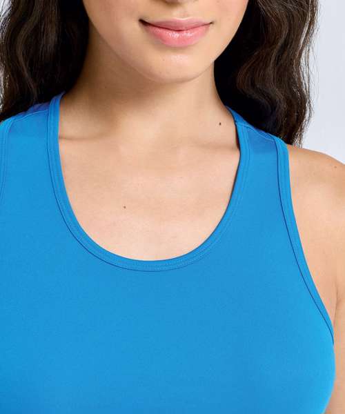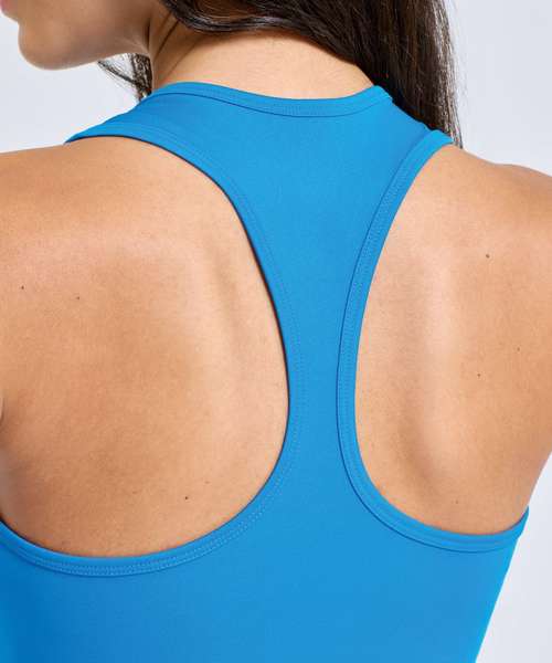 Scoop neck. Racerback. Curved hem. Recycled polyester. We recommend using block out vinyl and inks.Product contains no branded neck or waist label. Removable Kimble or looped garment tags. Inner seam label holds important product information on one label with a second label containing brand information which can be cut-away.