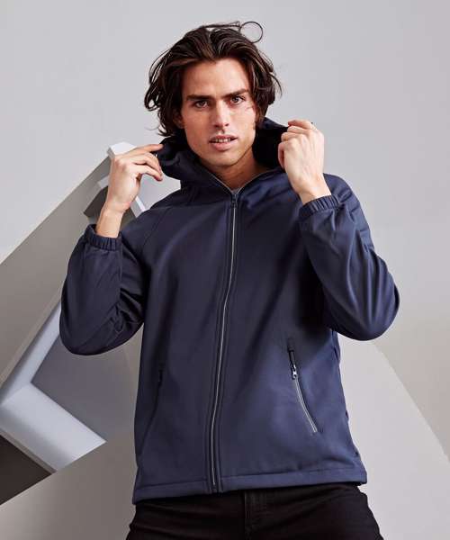 Reliable 2-layer bonded softshell jacket with hood. Full-length zip with storm flap and chin guard. Three-panelled hood with adjustable toggles. Two front zipped pockets. Elasticated cuffs. Raglan sleeves. Shaped to fit. Inner hem with adjustable toggles. Showerproof. Windproof. Two inside pockets. Easy re-label system. Product contains no branded neck label. Removable Kimble or looped garment tags. Inner seam label holds important product information on one label, with a second label containing brand information which can be cut away.