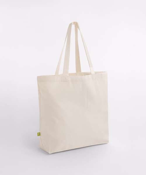 Large capacity. Can be carried by hand or over the shoulder. CutAway label for ease of rebranding. Contains 100% GOTS-certified organic cotton, certified by Control Union CU811033.