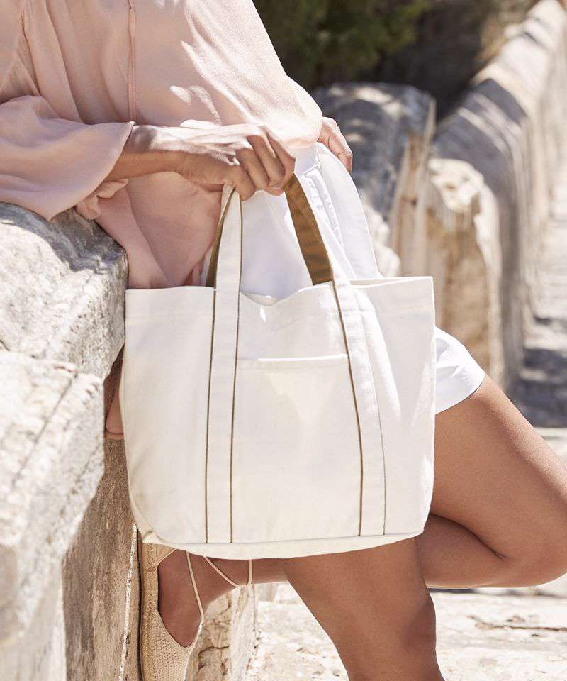 The Courtside medium tote is the perfect companion for those who like to travel light. Made from premium heavyweight cream canvas with subtle coloured trims, this medium tote is designed for hands-free, everyday ease. Its carefree design ensures comfort, while adding a touch of relaxed style to any outfit. Whether it’s quick errands or a day out, this tote bag perfectly balances practicality with understated style.