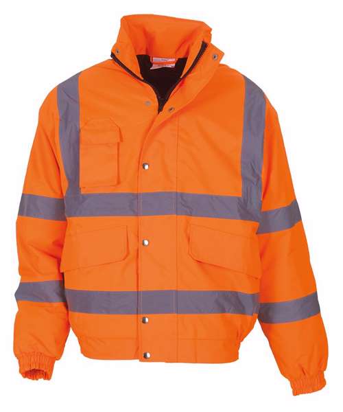 Hi-Vis Yellow & Orange conforms to EN ISO EN20471:2013 Class 3 & EN343 against foul weather. Orange also conforms to RIS-3279-TOM. Black and Navy provide enhanced visibility (non-EN471 standard). Heavy duty zip with studded storm flap. 2 outer pockets with over flaps. Matching colour self-fabric elastication at cuffs and hem. Diamond quilted Nylon lining with 190g Polyester padding. Inside patch pocket. Throughout stitched and taped seams to ensure waterproof. Foldaway hood. Matching trousers available, reference HVS461, HVS462 & HVS463.