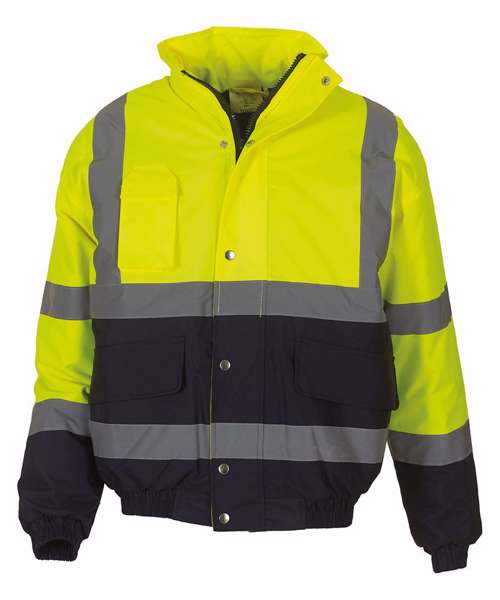Conforms to EN ISO471:2013 Class 3 and EN343+ A1:2007 Class 3.1 against foul weather. Waterproof Oxford PU coated Polyester outer fabric. Navy contrast helps to provide a corporate image whilst disguising dirt around the hem and cuff areas. Quilted Nylon lining with 190g Polyester wadding. Heavy duty zip front with studded storm flap. Navy elastication at cuffs and hem. 2 outer pockets with storm flaps. Inside patch pocket. Concealed hook and loop fastening in hood with drawcord adjuster. Fully stitched and taped seams to ensure 100% waterproof.