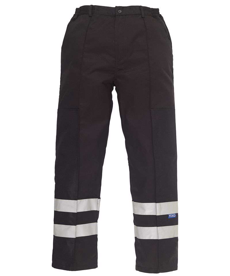 Made of 245gsm 65/35 Polycotton fabric with EN388: 2003 tested Nylon ballistic material on outside of legs, from ankle to thigh; Reliable protection and functionality; Front zip fly with concealed hook and bar fastening; Waistband with five belt loops; Elastication at both sides of waist for freedom and comfort; 2 side swing pockets and 1 rear jetted hip pocket; Two 5cm width reflective bands on the bottom of each leg to enhance the visibility; Ballistic nylon panels on the outer legs offer maximum protection against glass, tin cans and other dangerous materials; Suitability: Ideal for local authorities and councils, refuse workers, security guards etc.