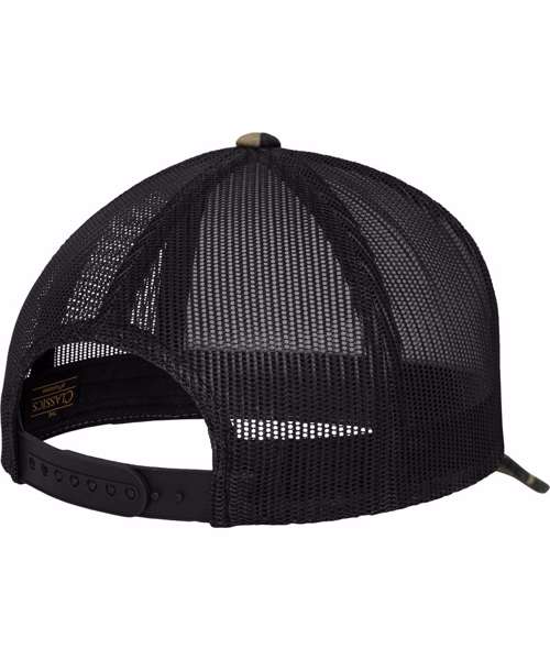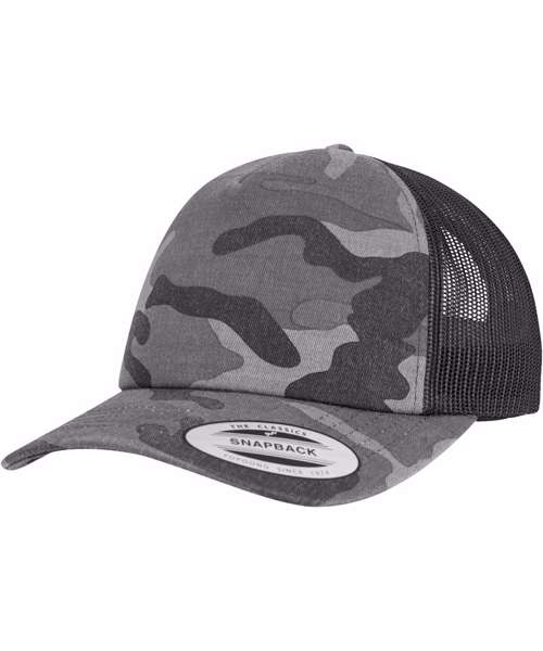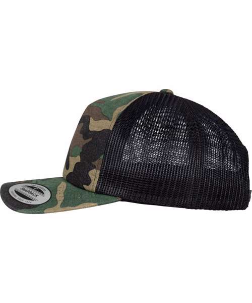Ideal for embroidery. Classic trucker mesh. Matching plastic snap. Hard buckram. Camo Colours.