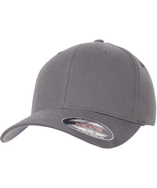 Sporty Flexfit shape. Brushed twill. wool-blend. Silver undervisor. Eight rows of seams on the top of the visor.