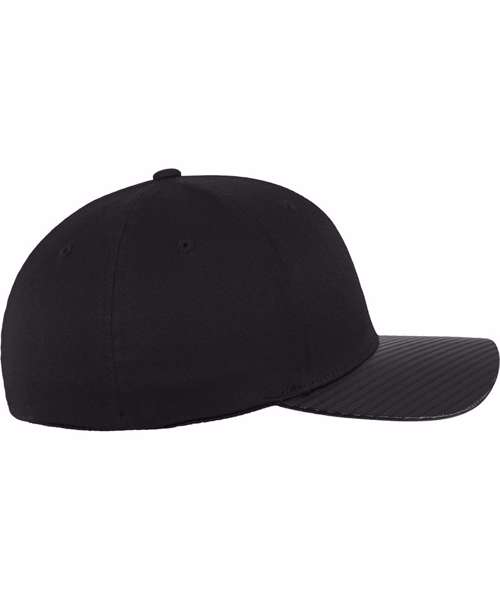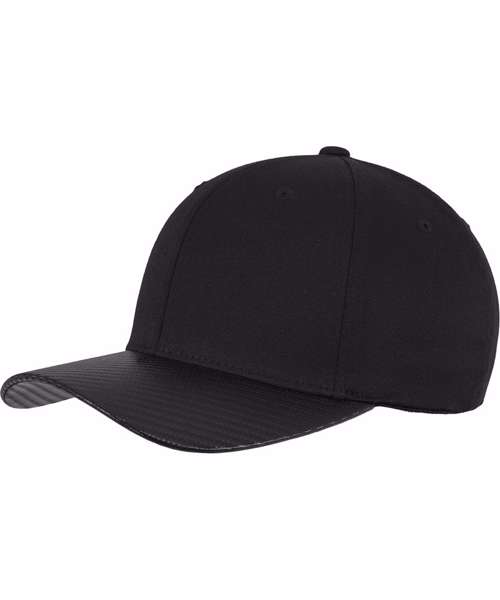 The carbon Flexfit cap has an athletic shape, hard buckram and carbon style visor.